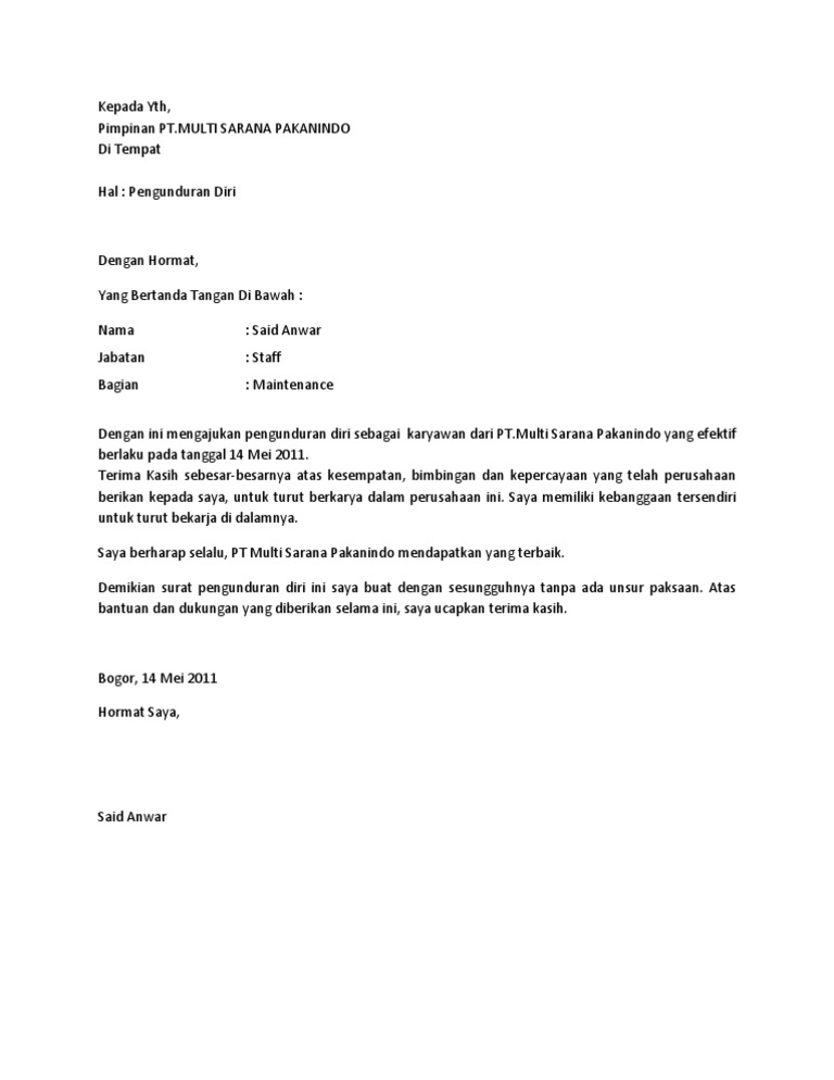 16 Contoh Surat Pengunduran Diri Dari Sekolah Lengkap Contoh Surat from i0.wp.com Surat pengunduran diri ini sebagai bukti keprofesionalan dalam mengundurkan diri. Padahal, tahukah kamu surat resign yang baik bakal jadi salah satu faktor yang menunjukkan kamu karyawan. Tidak hanya itu, sebelum anda mengirimkan surat pengunduran diri ke perusahaan anda bekerja, maka anda harus memastikan terlebih dahulu proses pengunduran diri dari pekerjaan sudah benar dengan prosedur dari pengunduran diri karyawn yang berlaku di perusahaan tempat anda bekerja. Cv ini masih dalah format bahasa inggris, namun mengubahnya ke bahasa indonesia tidaklah susah, karena anda hanya butuh mengganti. Contoh surat pengunduran diri atau resign kerja perusahaan, hotel, bank, alfamart. Oleh sebab itu, lebih baik rujuk contoh surat resign dalam bahasa inggeris, buat sedikit modifikasi dan terus hantar pada boss. Berikut beberapa contoh surat pengunduran diri yang dapat anda jadikan pedoman dalam membuat surat pengunduran diri : Berikut contoh surat lamaran pekerjaan terbaru 2019 resmi yang baik dan benar dengan format formal yang bisa anda berikut contoh surat lamaran pekerjaan untuk bumn seperti pln , kai , pertamina , telkom , bank bri dan badan (doc) download contoh surat balasan lamaran pekerjaan word.